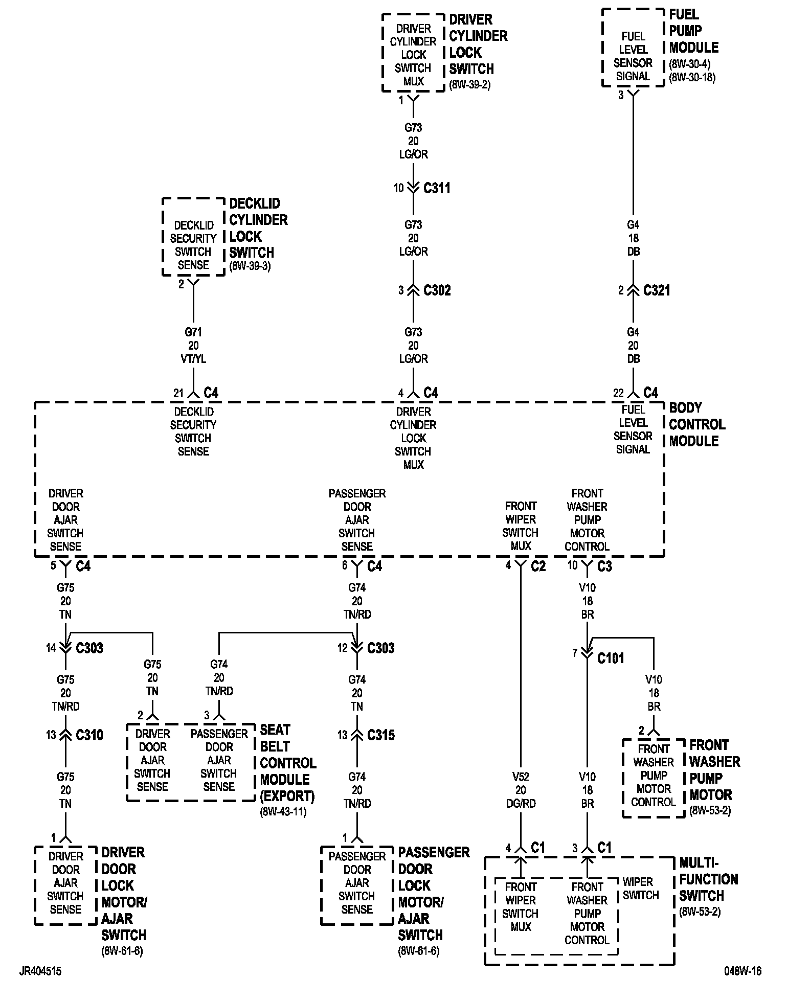 Home >> Chrysler >> 2004 >> Sebring Convertible L4-2.4L VIN X >> Repair and Diagnosis >> Powertrain Management >> Computers and Control Systems >> Relays and Modules - Computers and Control Systems >> Body Control Module >> Diagrams >> Electrical Diagrams >> 8W-45-15
