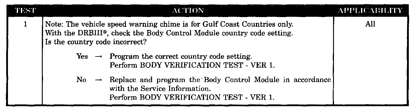 VEHICLE SPEED WARNING CHIME PROBLEM