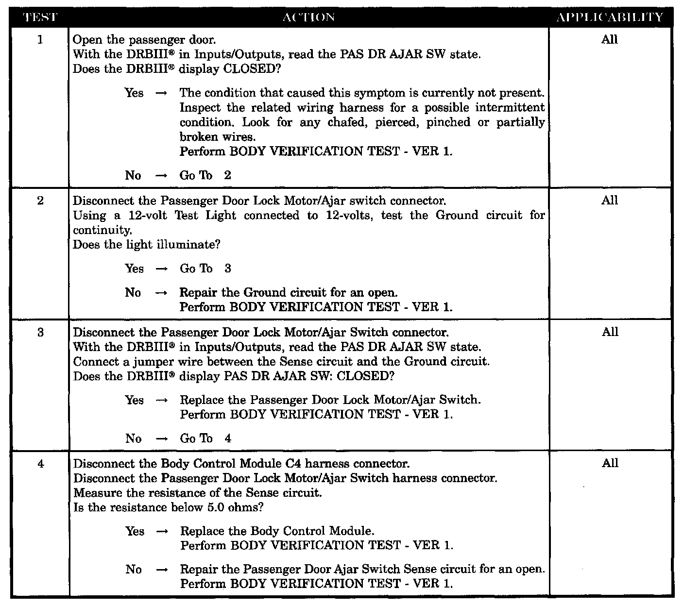 PASSENGER DOOR AJAR CIRCUIT OPEN