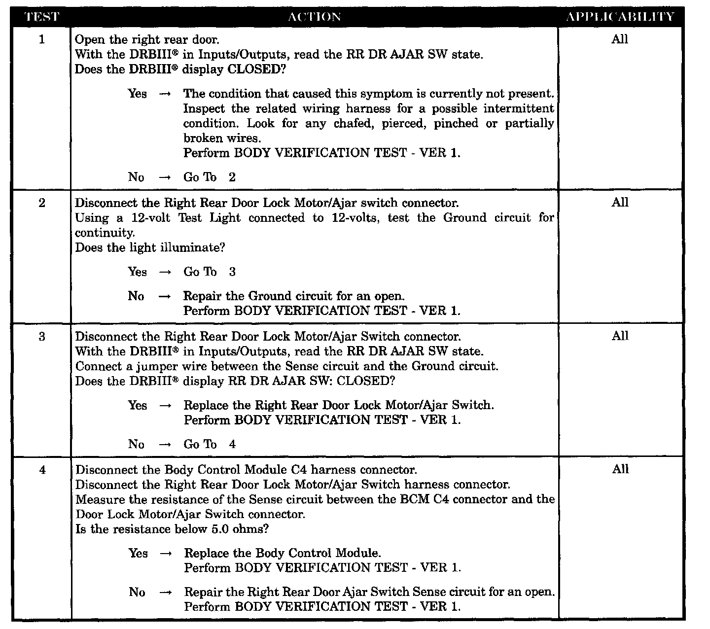 RIGHT REAR DOOR AJAR CIRCUIT OPEN