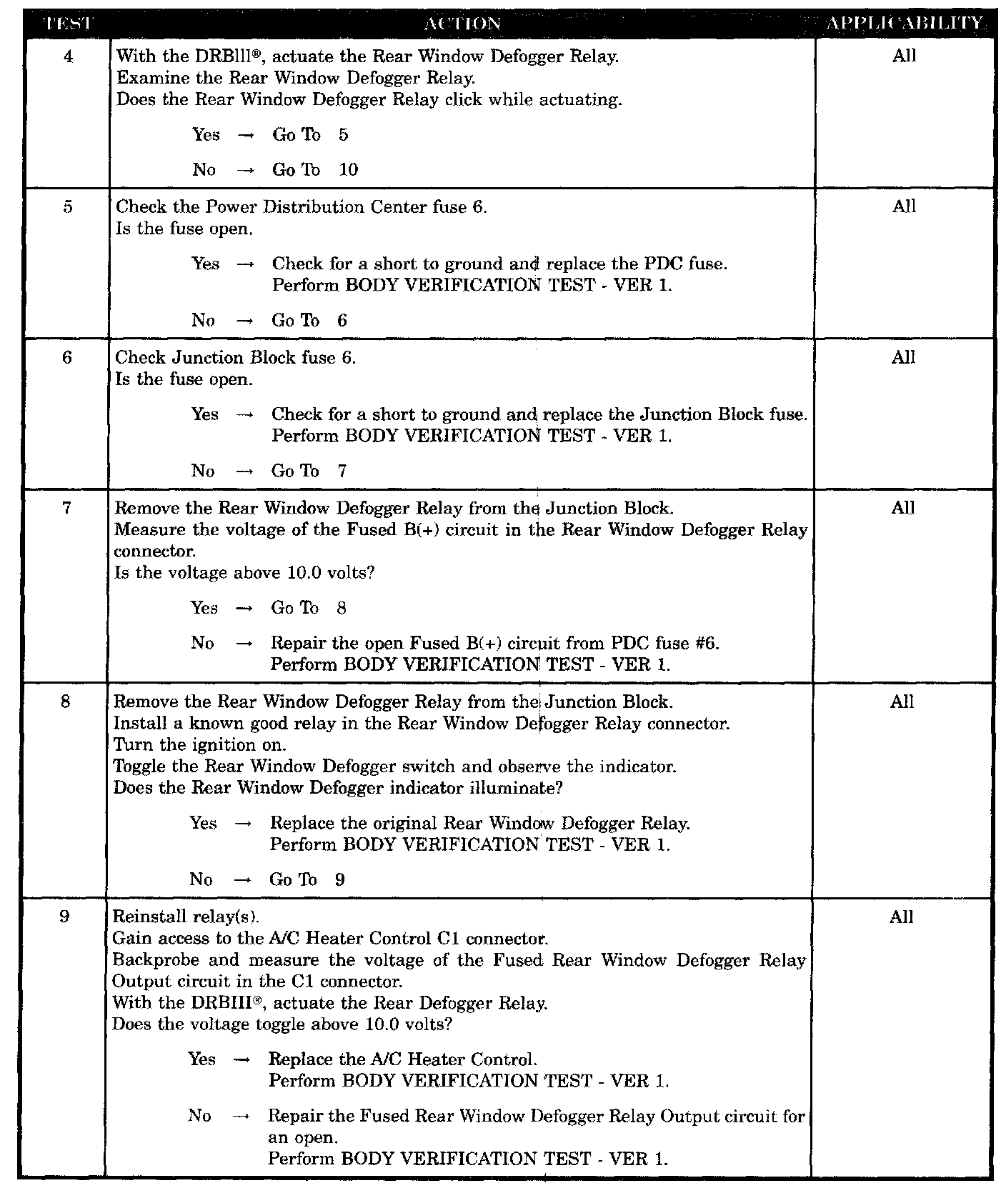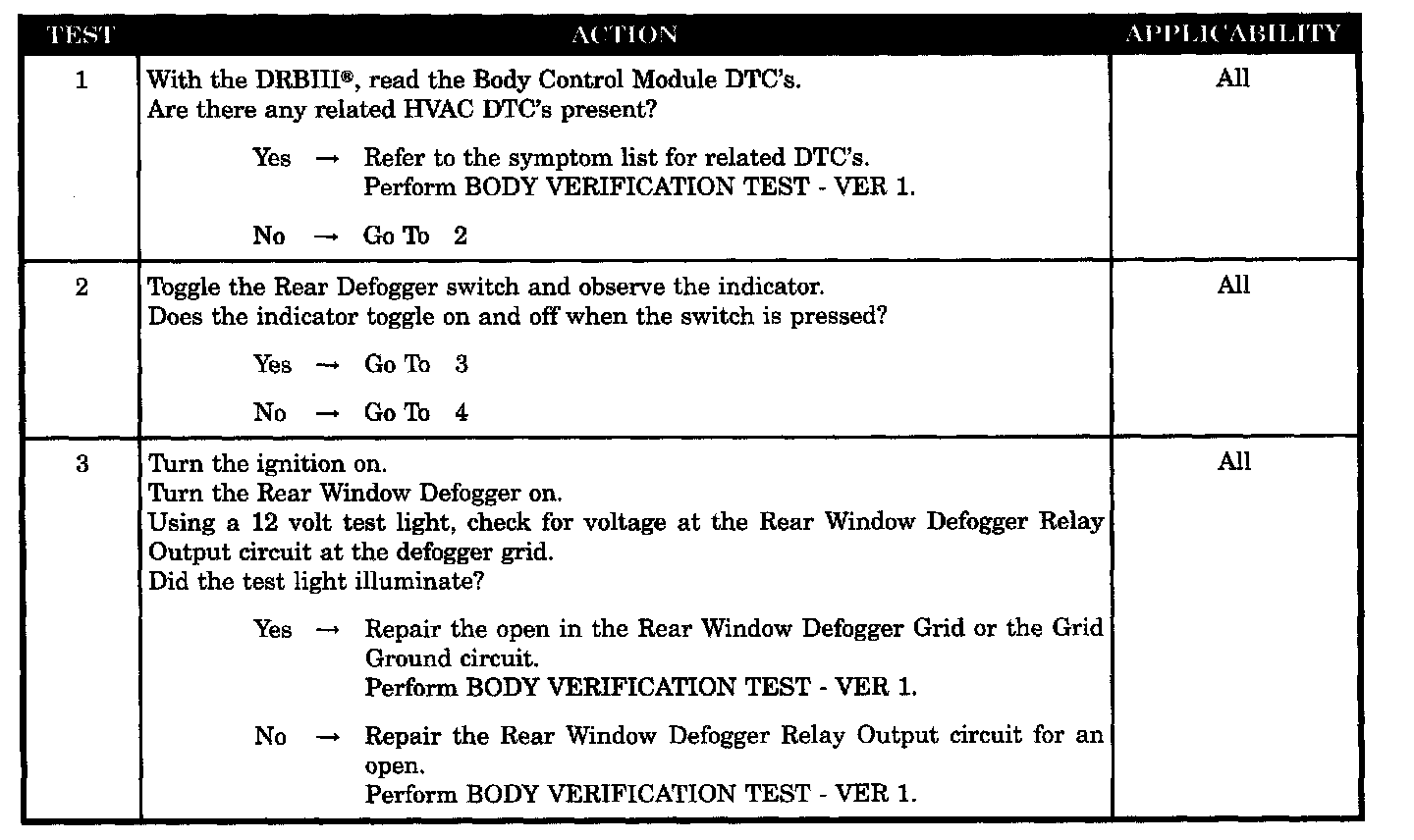 Rear Window Defogger Inoperative (Equipped With Manual Temp Control)