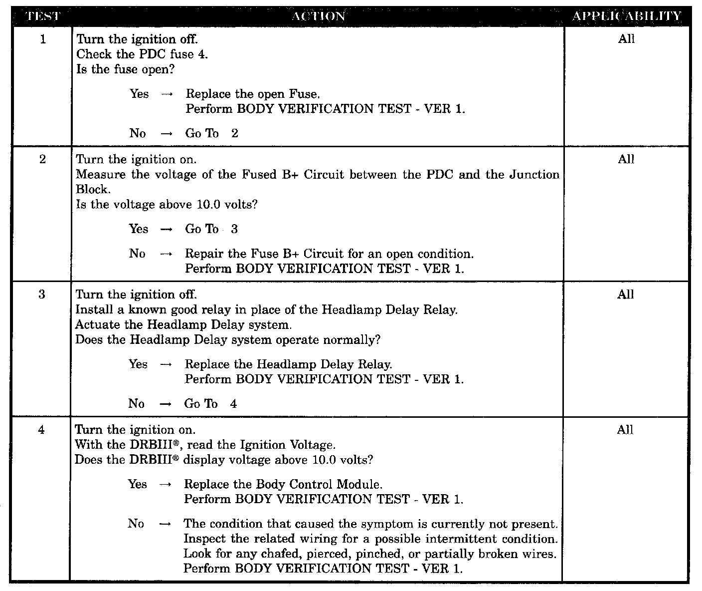 HEADLAMP DELAY RELAY INOPERATIVE