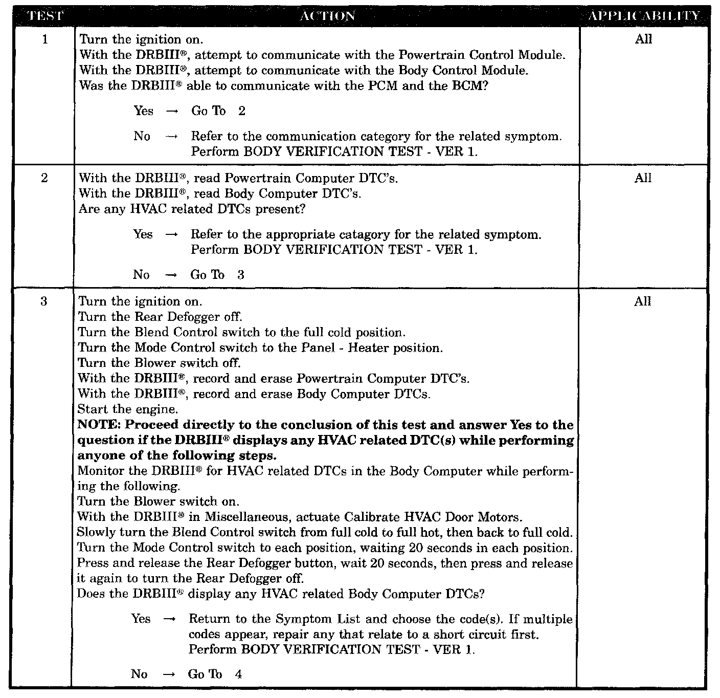 - Monitor the DRBIII(R) for HVAC DTCs