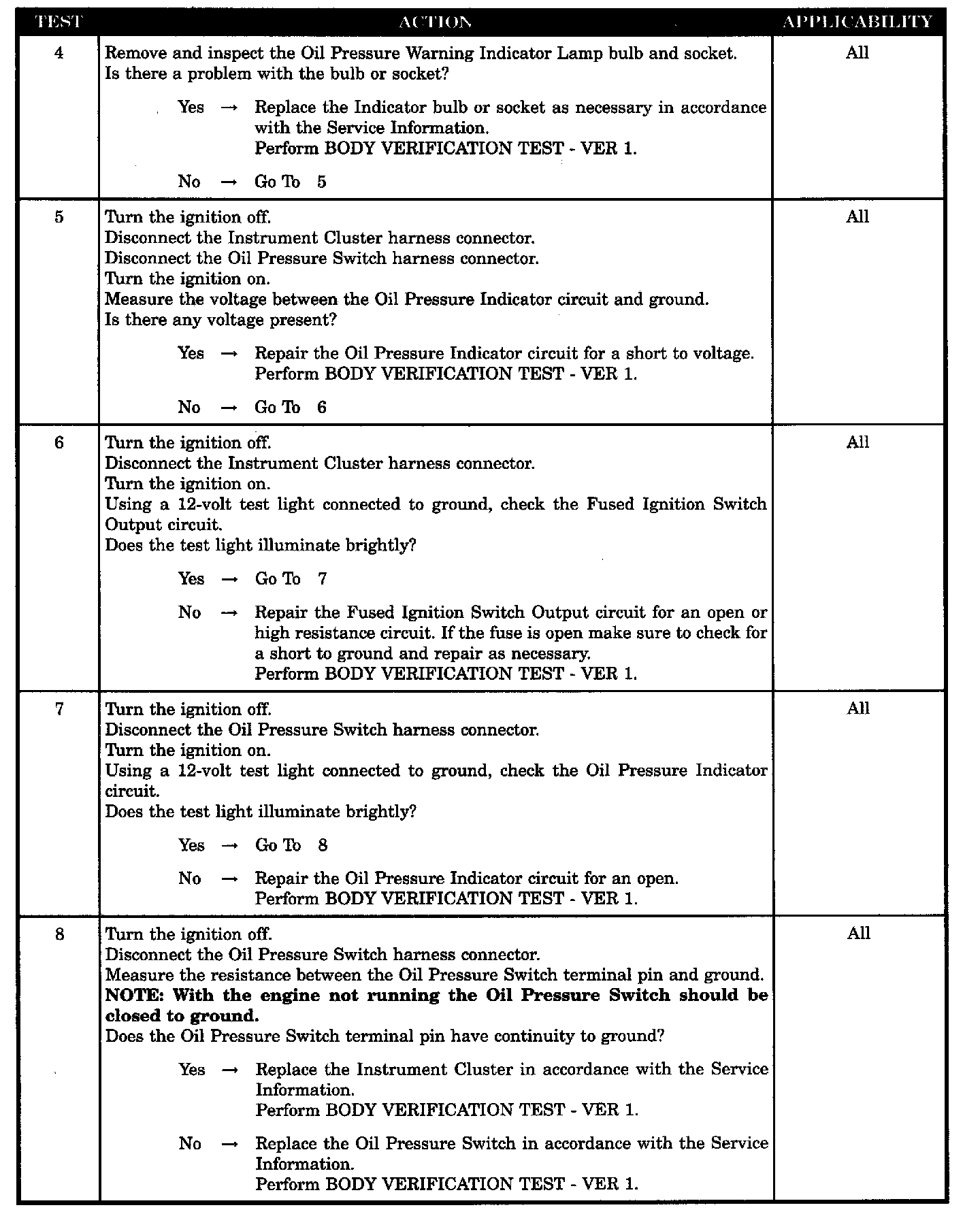 OIL PRESSURE INDICATOR NOT OPERATING PROPERLY
