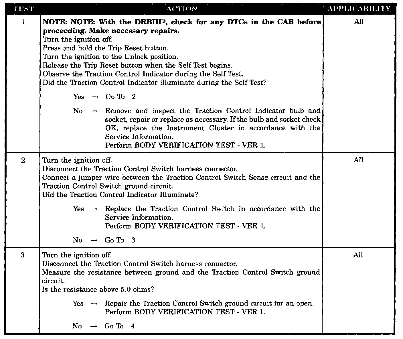 Traction Control Indicator Inoperative