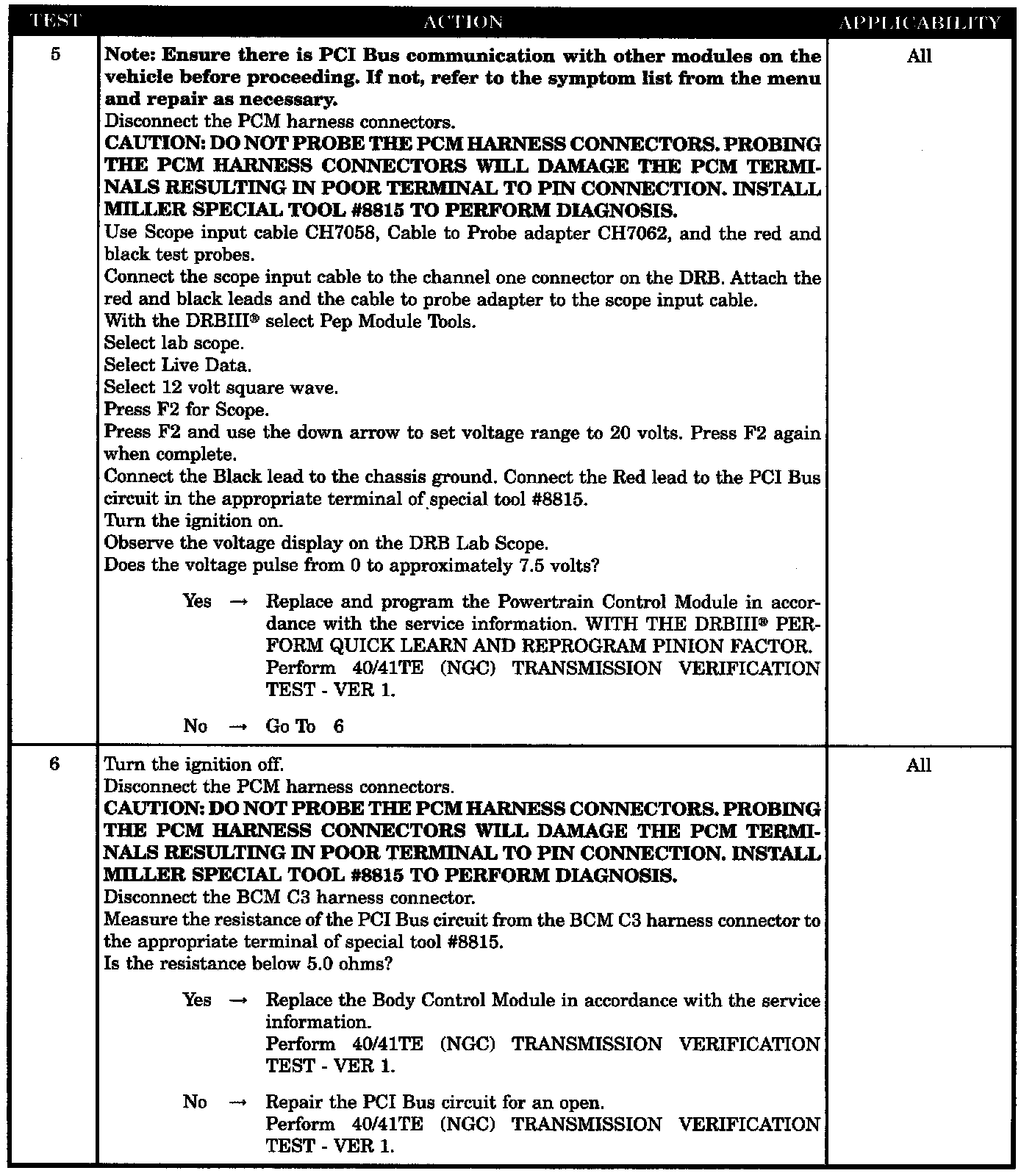 No Response From Transmission Control Module - NGC