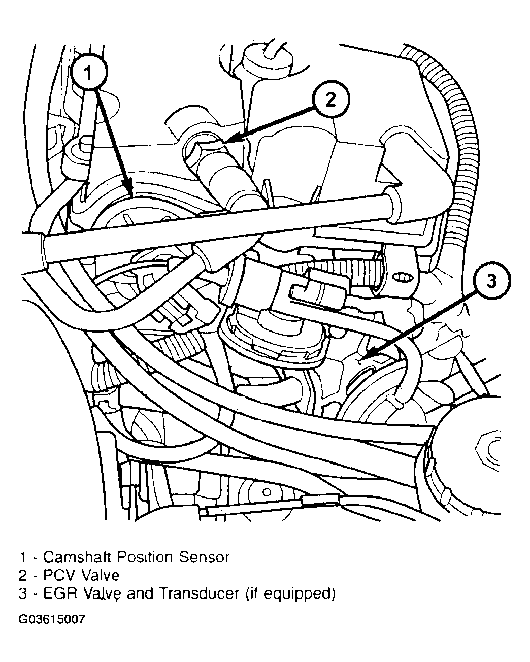 The camshaft position sensor for the 4 cylinder engine is mounted on the end of the cylinder head (Figure)or the front of the cylinder head on 2.7L (Figure).