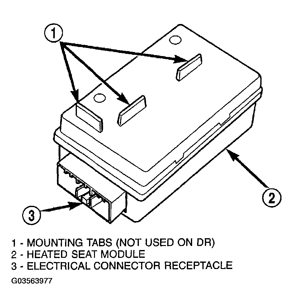 The heated seat module is also known as the Seat Heat Interface Module. The heated seat module (Fig 1) is located under the drivers front seat cushion, where it is secured to a mounting bracket. The heated seat module has a single connector receptacle that allows the module to be connected to all of the required inputs and outputs through the seat wire harness.