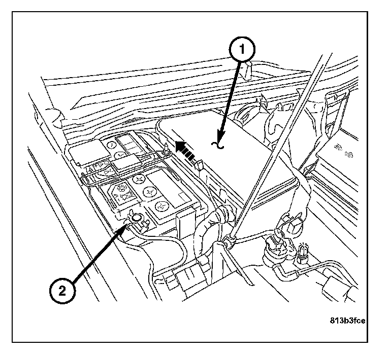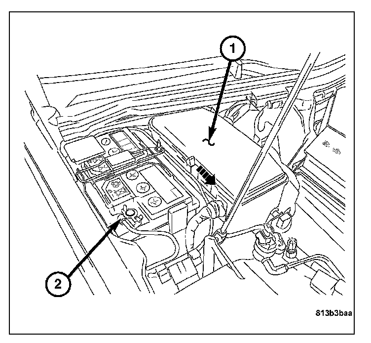 1. Disconnect the negative battery cable (2).