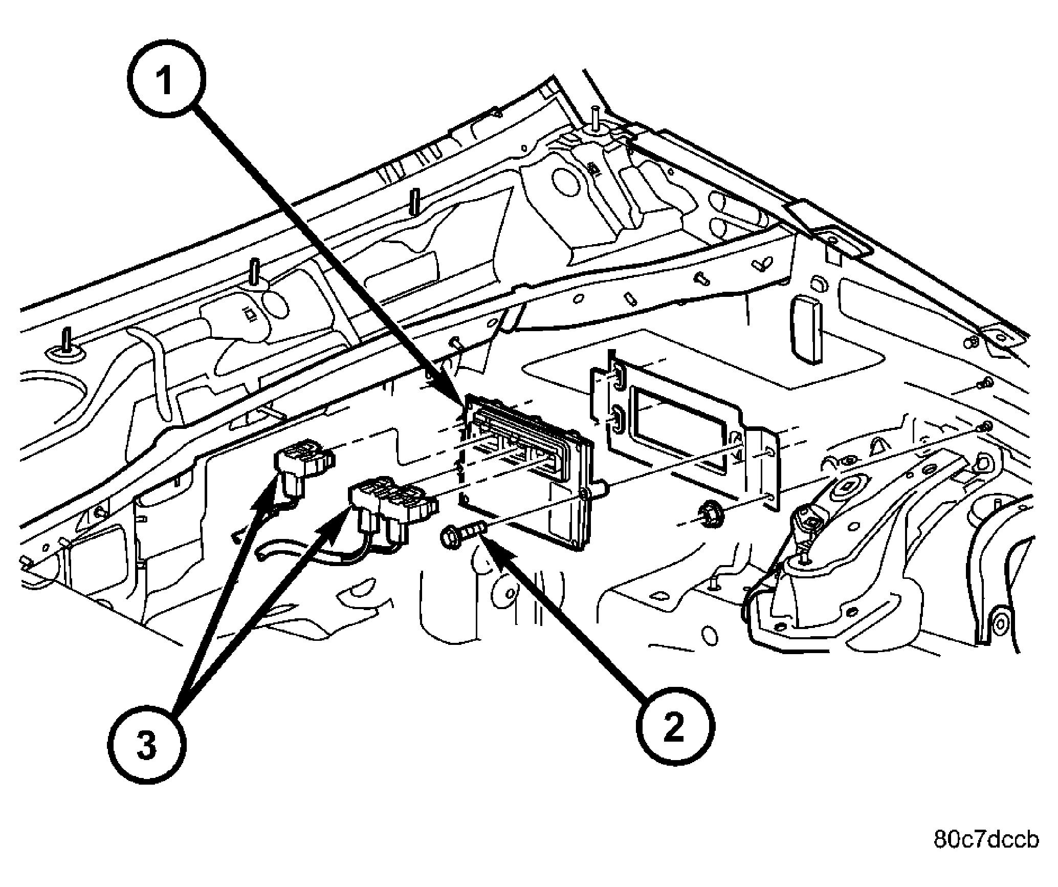 - Remove three PCM mounting bolts and remove PCM from vehicle.