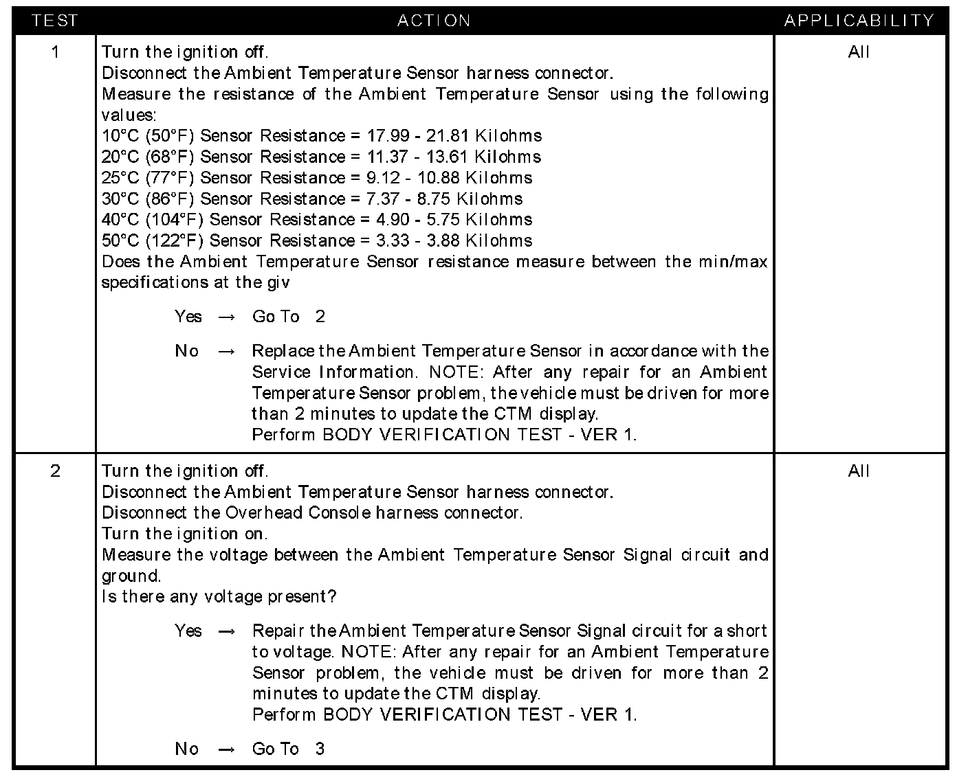 - Ambient temperature sensor signal circuit short to sensor ground circuit