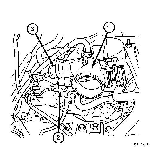 1 - Throttle Body 2 - Throttle Position Sensor 3 - Idle Air Control Motor - Install throttle cable bracket. See Fig 3.