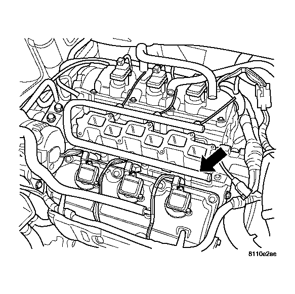 - Position fuel rail over cylinder heads, and push rail into place. Tighten fuel rail mounting bolts to 28 N.m (250 in. lbs.) torque. See Fig 3.