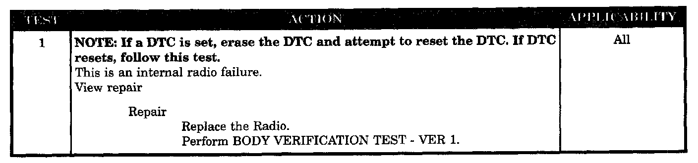 This symptom is diagnosed using the test CASSETTE PLAYER INOP.