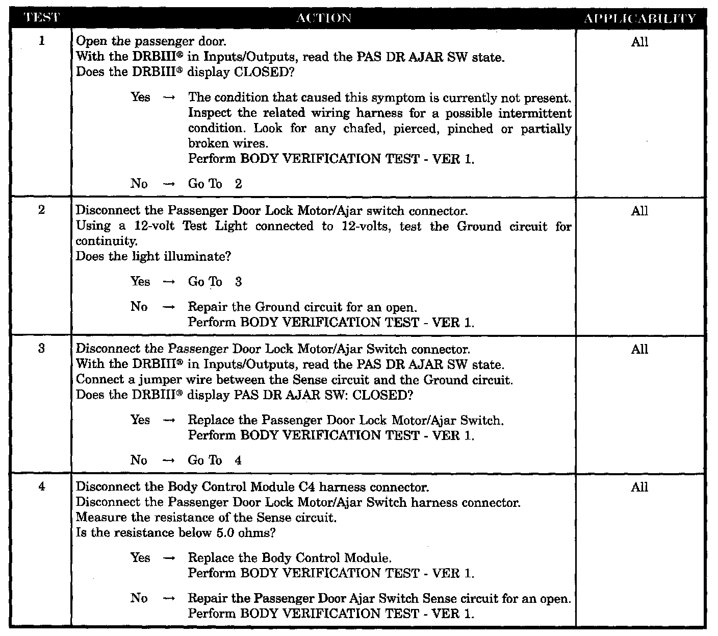 PASSENGER DOOR AJAR CIRCUIT OPEN