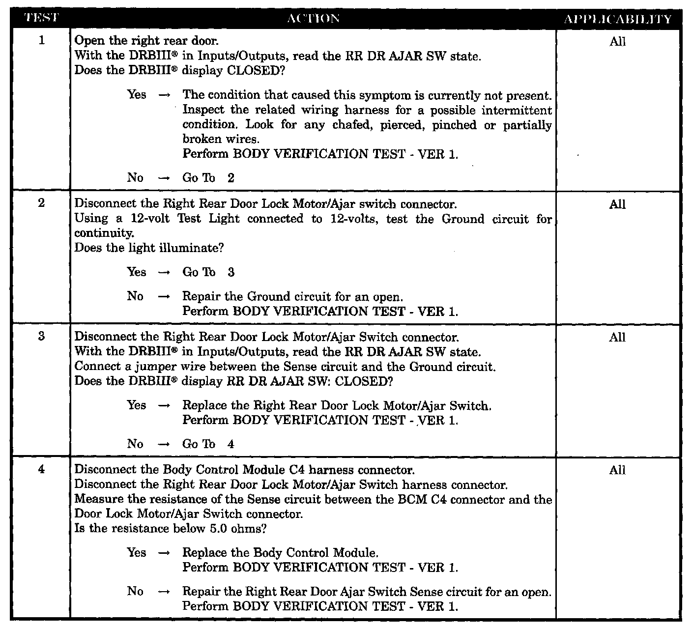 RIGHT REAR DOOR AJAR CIRCUIT OPEN