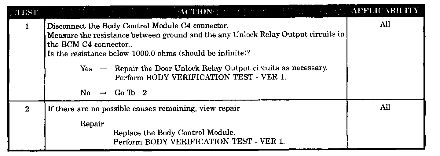 ALL DOORS EXCEPT DRIVER FAILING TO UNLOCK FROM ANY SWITCH