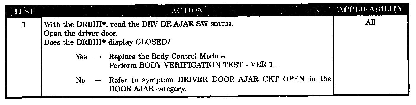 VTSS DOES NOT TRIP FROM DRIVER DOOR