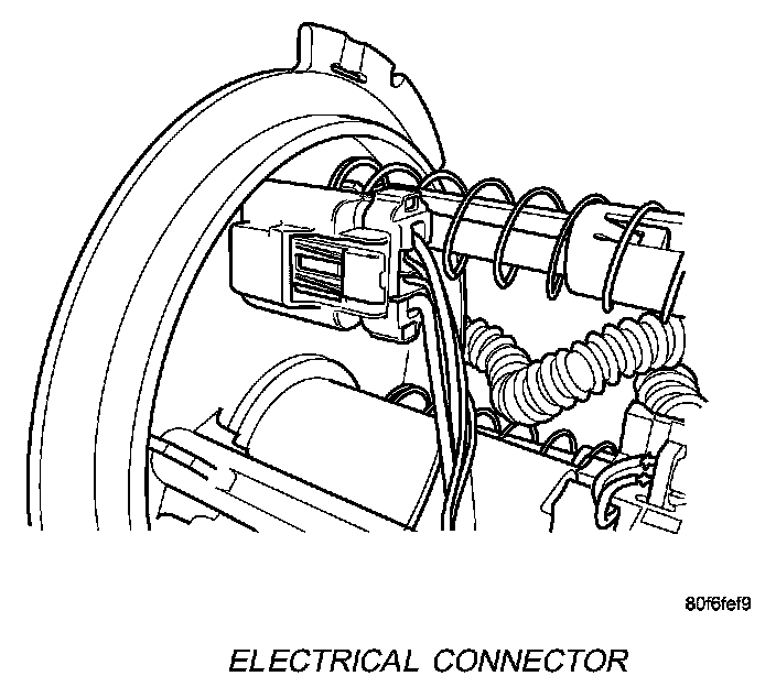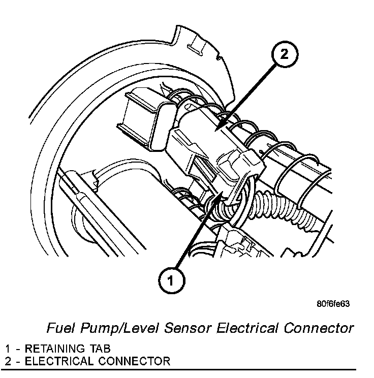 1. Depress retaining tab and remove the fuel pump/level sensor connector from the bottom of the fuel pump module electrical connector.
