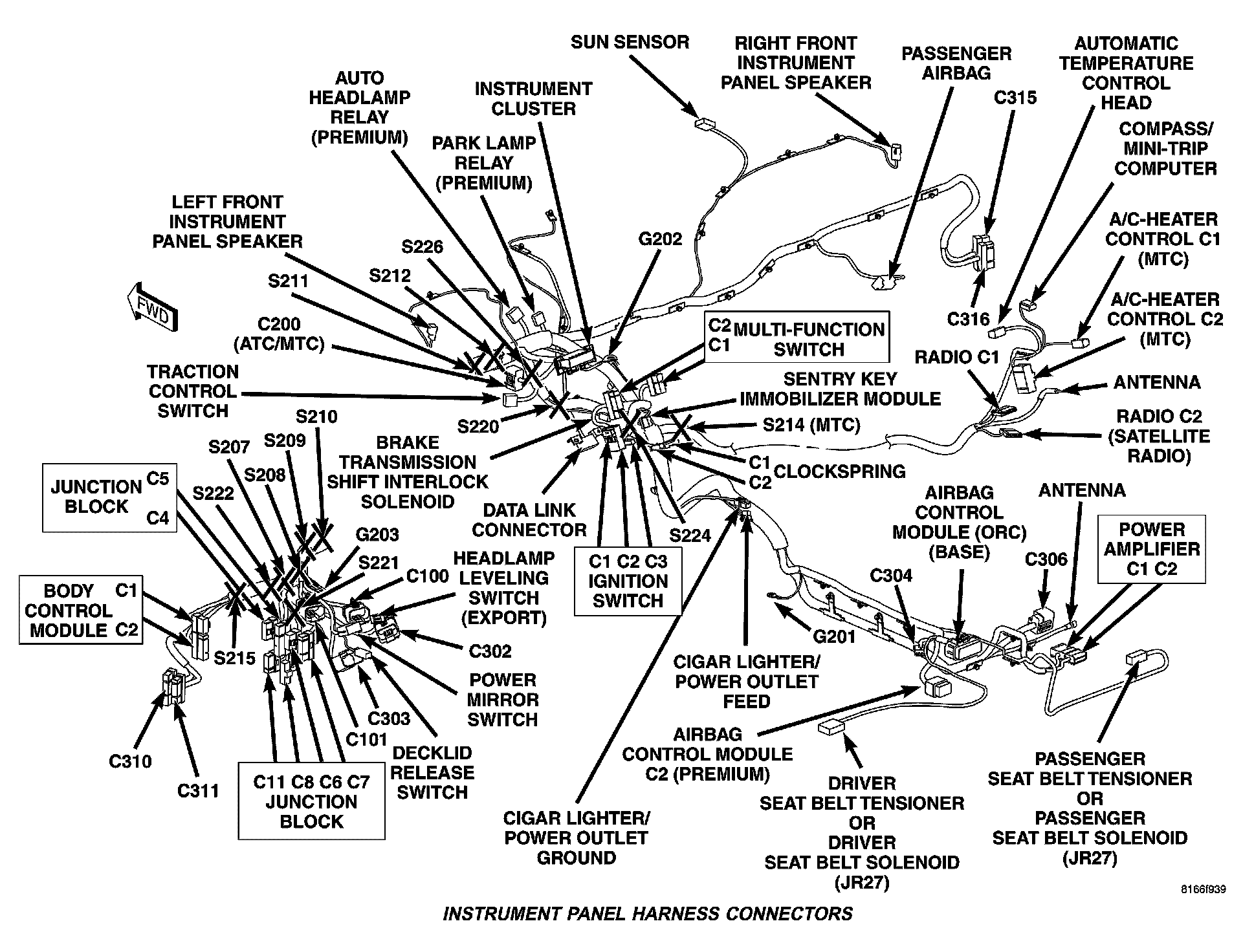 Instrument Panel Harness Connectors: