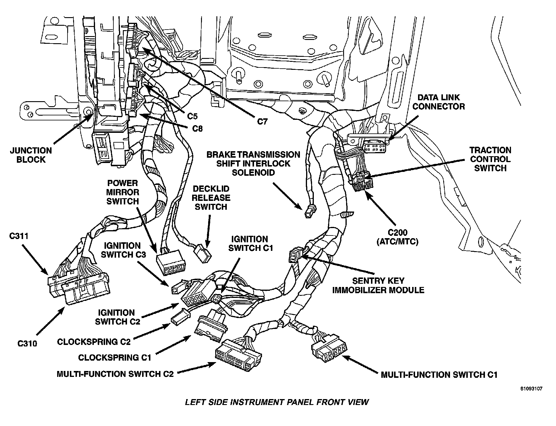 Left Side Instrument Panel Front View: