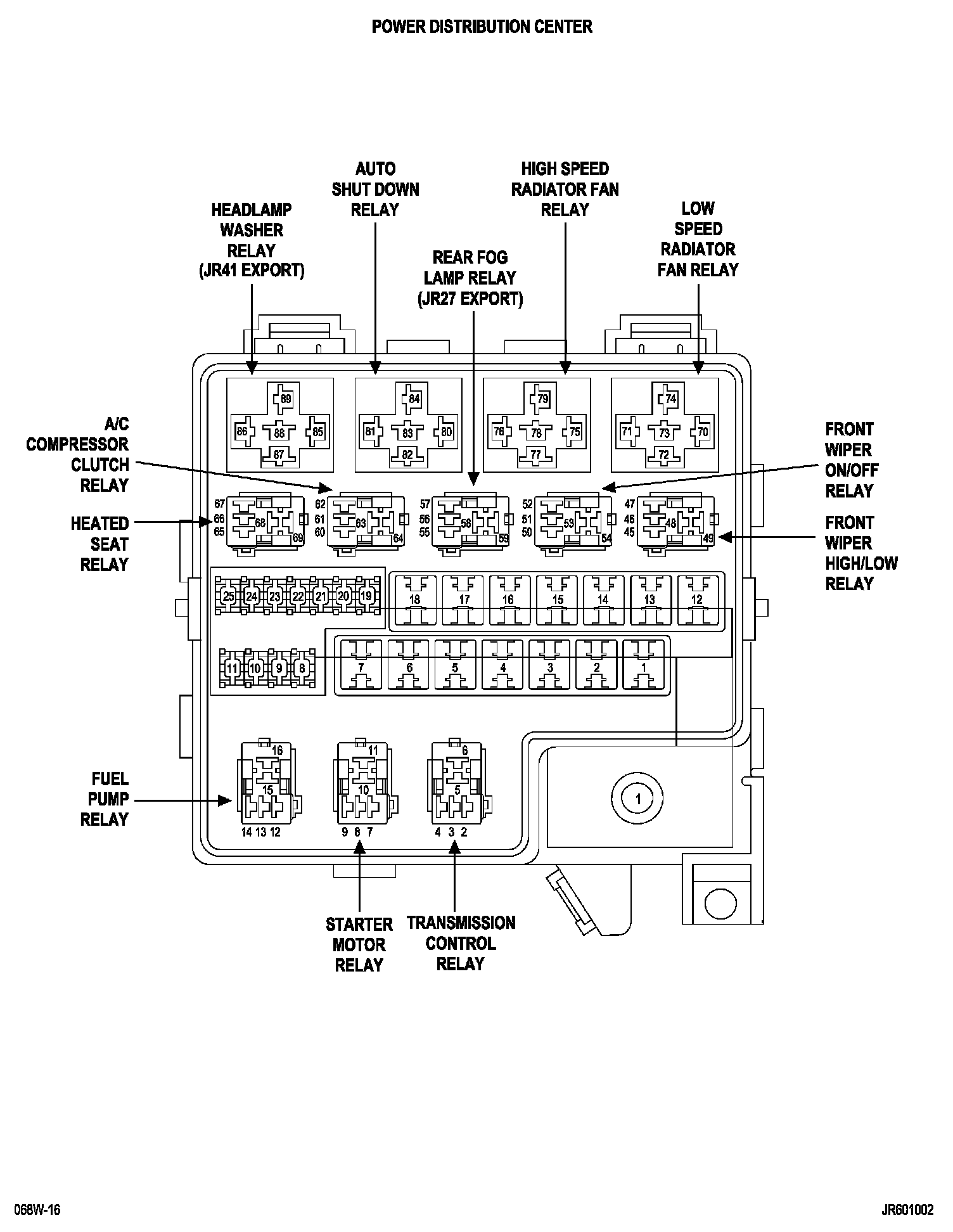 Auto Shut Down (ASD) Relay is located in the Power Distribution Center (PDC).