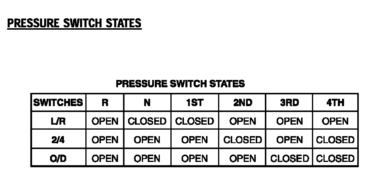 PRESSURE SWITCH STATES: