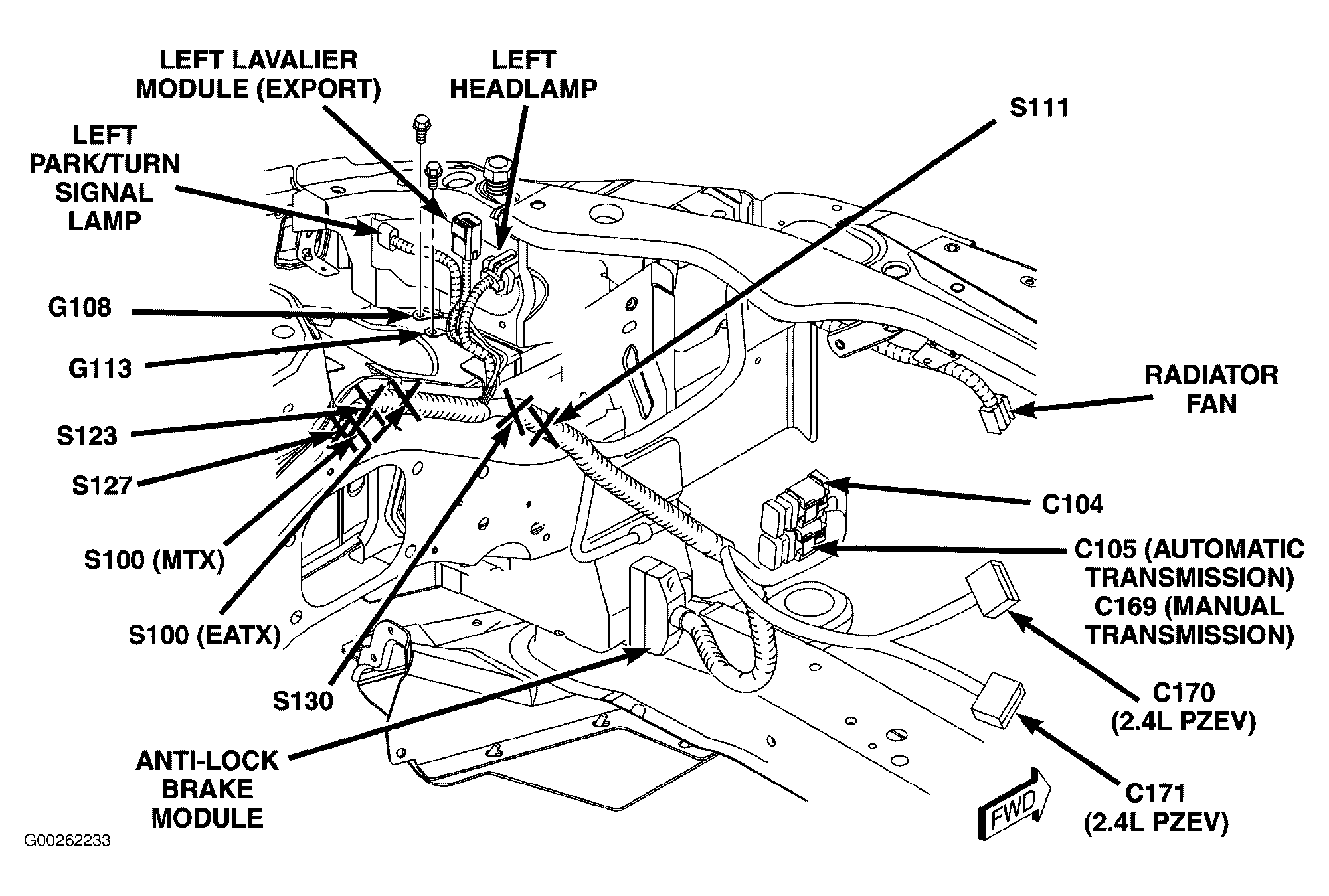 | Anti-Lock Brake Module | At lower left front of engine compartment. See Figure . |