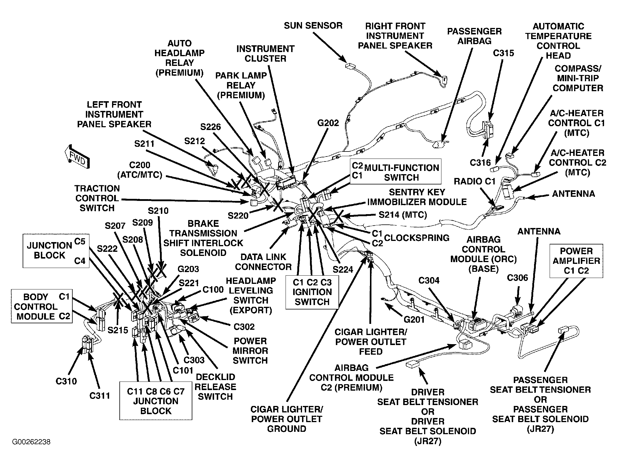 | Air Bag Control Module (Premium) | Center of floor, near shifter. See Figure . |