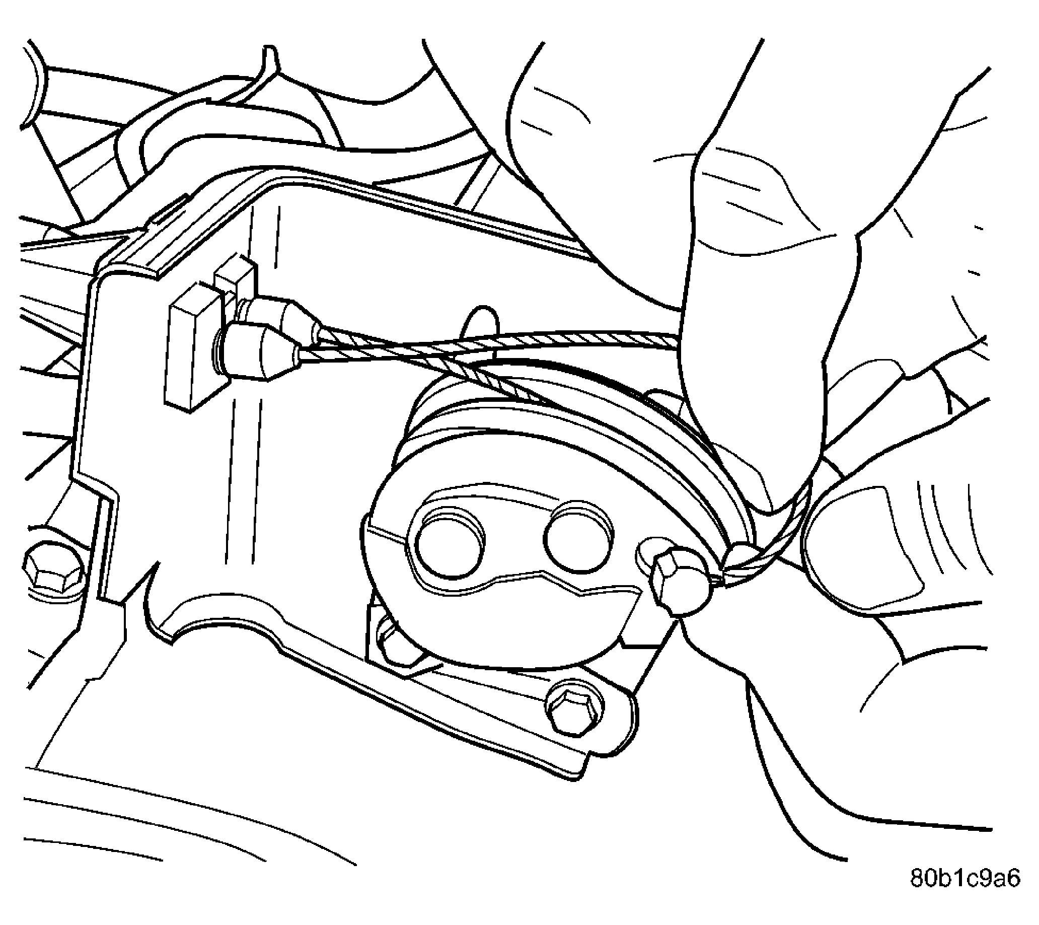 - From the engine compartment, hold the throttle body lever in the wide open position and install the throttle cable. See Figure.