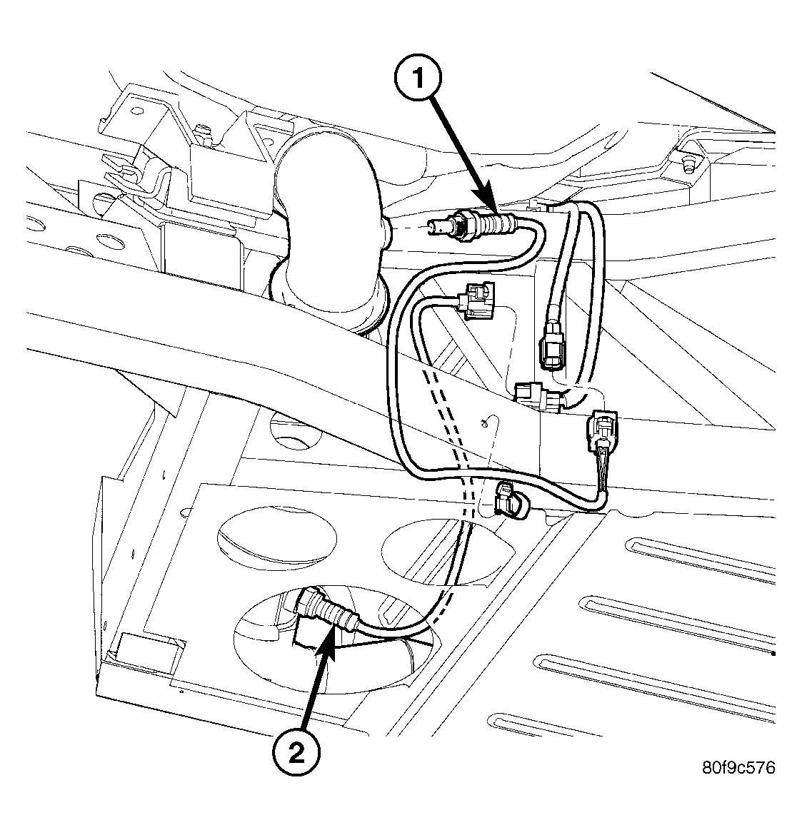 The downstream O2 sensors are in the exhaust system in between the catalytic convertors. See Fig 1.