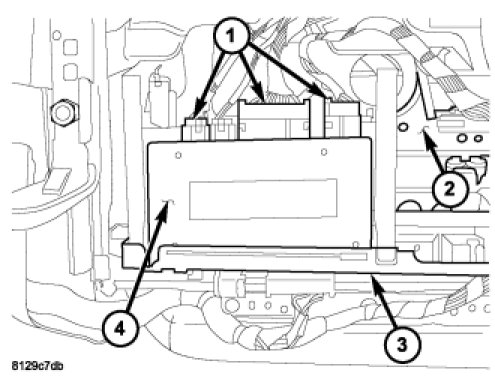 4. Pivot the module upward and disconnect the electrical connectors (1).