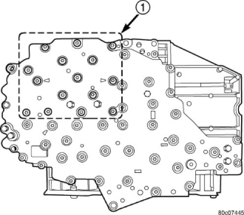 3. Install the bolts (1) to hold the transmission solenoid/TRS assembly onto the valve body.