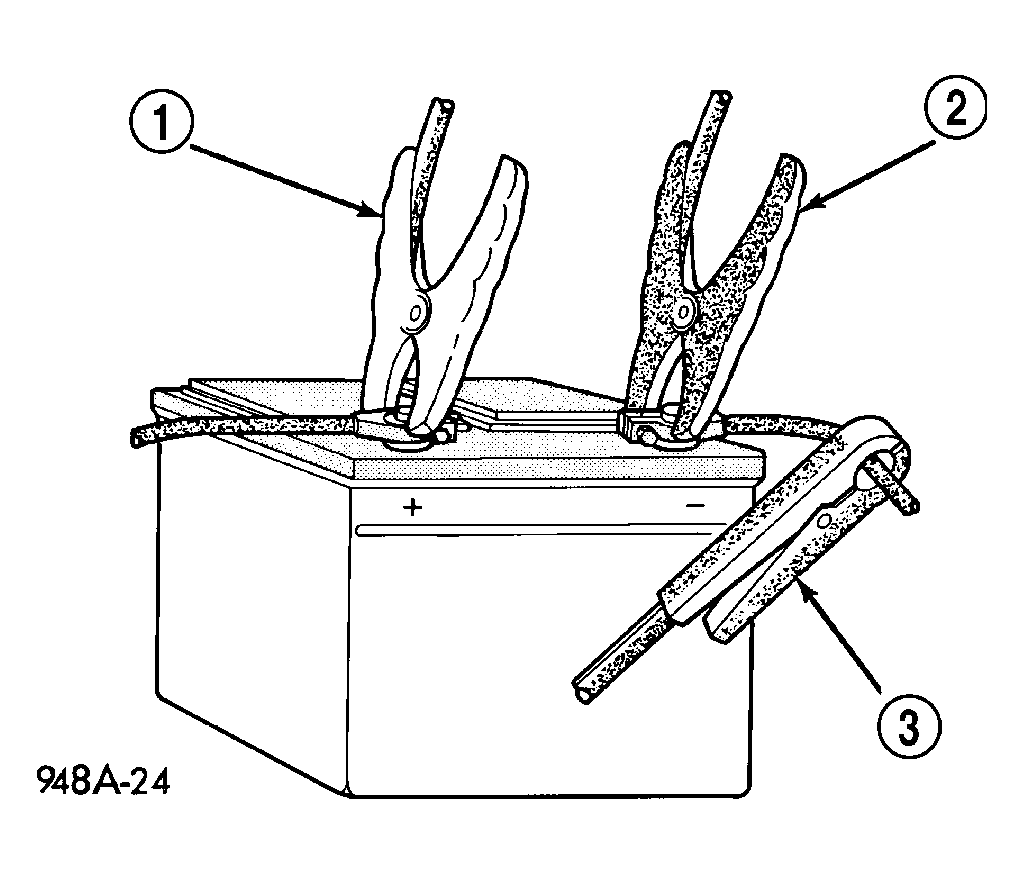 1 - POSITIVE CLAMP 2 - NEGATIVE CLAMP 3 - INDUCTION AMMETER CLAMP - Fully engage parking brake.