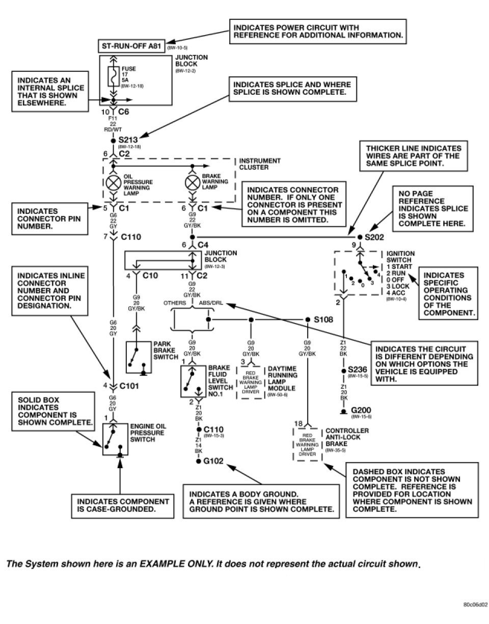 It is important to realize that no attempt is made on the diagrams to represent components and wiring as they appear on the vehicle. For example, a short piece of wire is treated the same as a long one. In addition, switches and other components are shown as simply as possible, with regard to function only.
