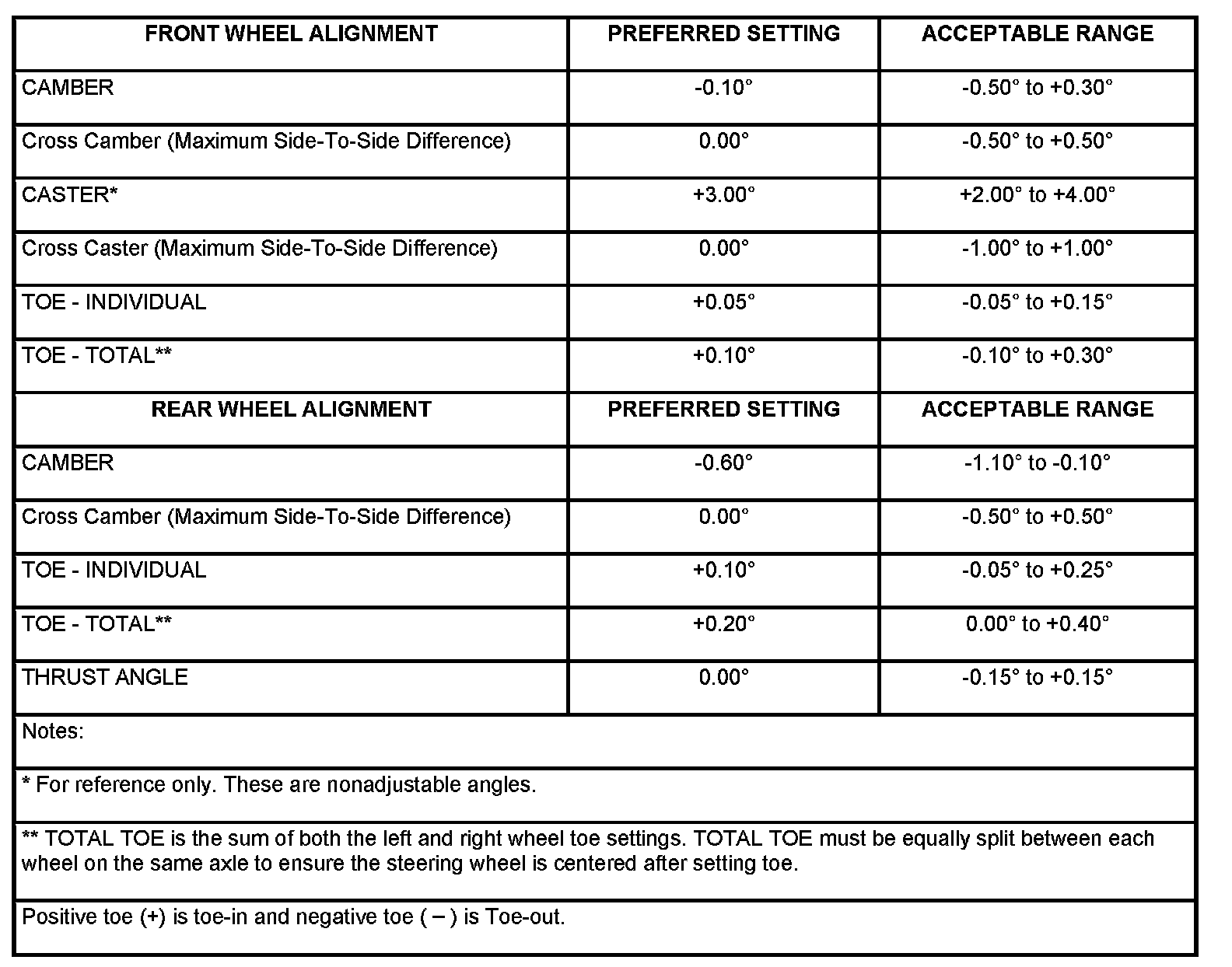 NOTE: All wheel alignments are to be set with the vehicle at curb height.