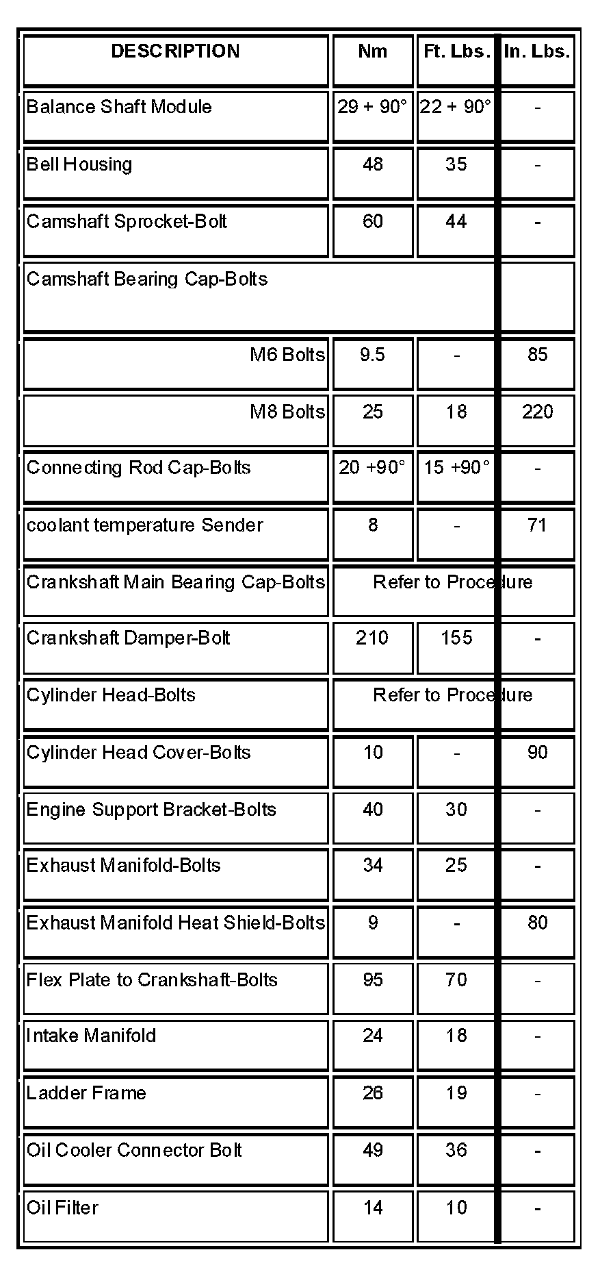 Engine Torque Specifications