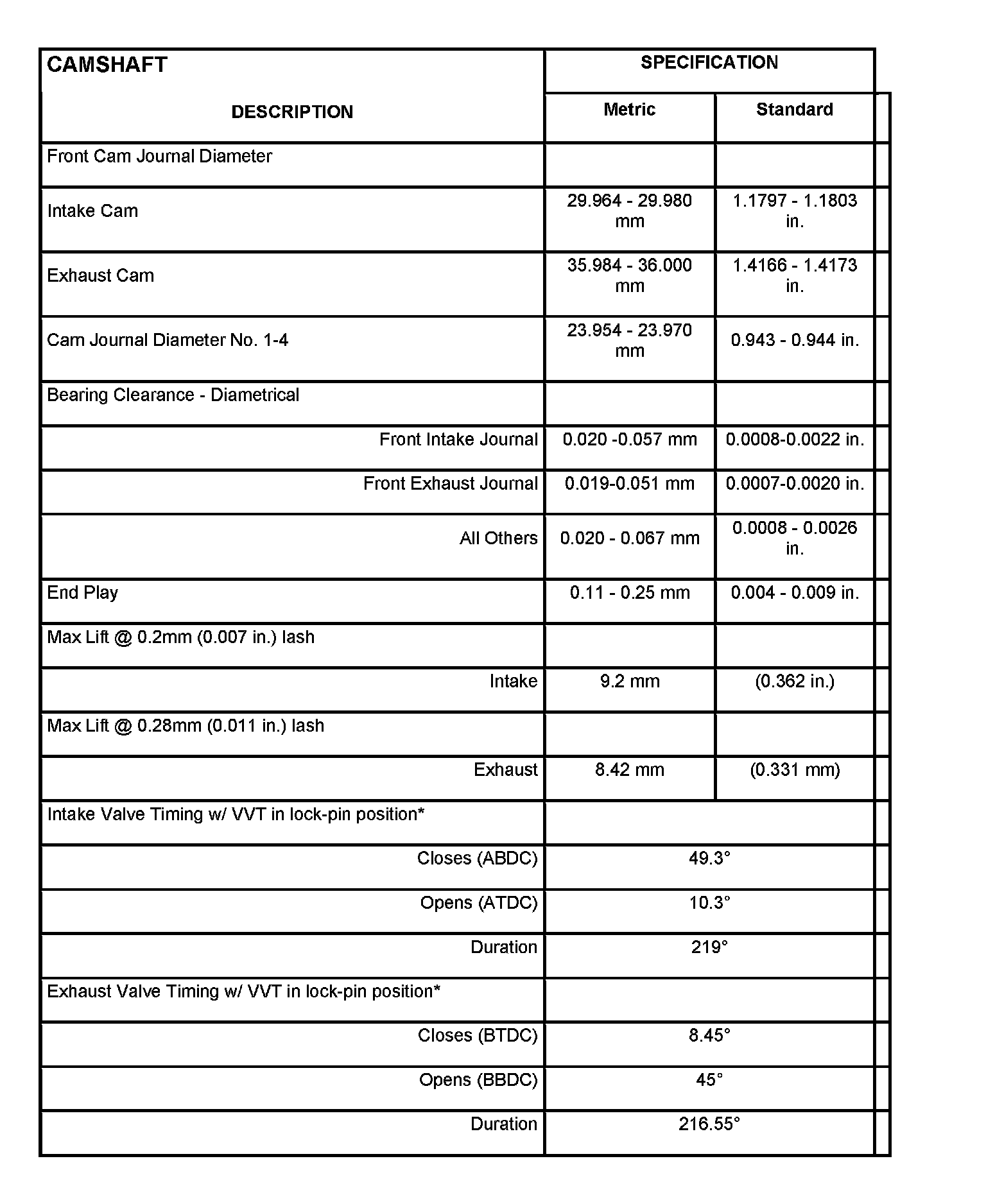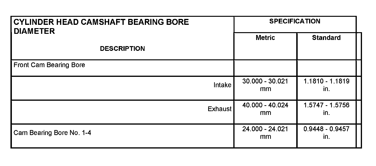 Cylinder Head Camshaft Bearing Bore Diameter