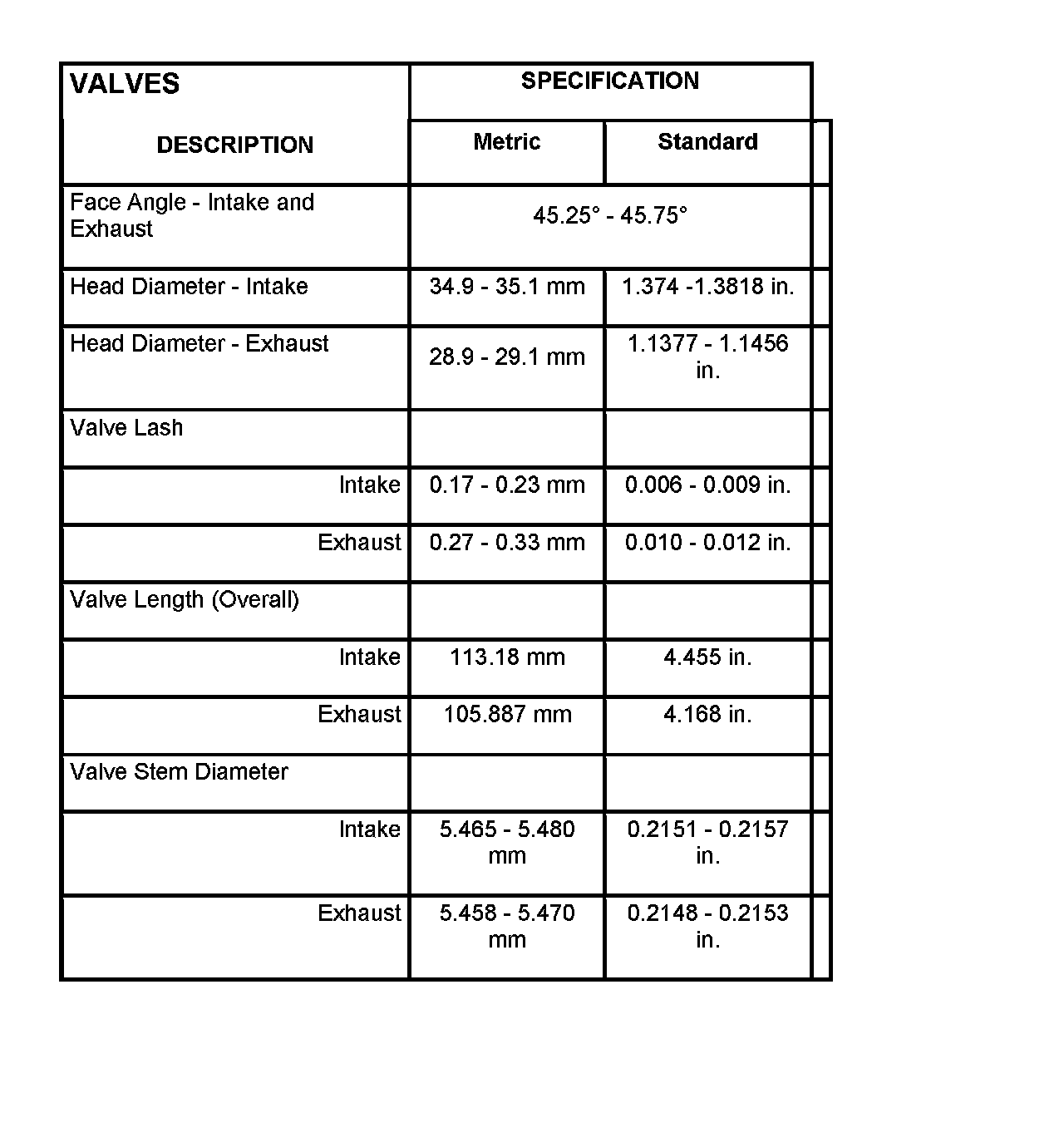Valve Stem To Guide Clearance: