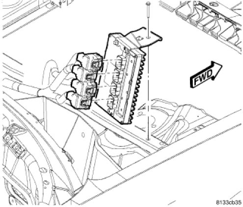 NOTE: USE THE SCAN TOOL TO REPROGRAM THE NEW POWERTRAIN CONTROL MODULE (PCM) WITH THE VEHICLES ORIGINAL IDENTIFICATION NUMBER (VIN) AND THE VEHICLES ORIGINAL MILEAGE. IF THIS STEP IS NOT DONE, A DIAGNOSTIC TROUBLE CODE (DTC) MAY BE SET.