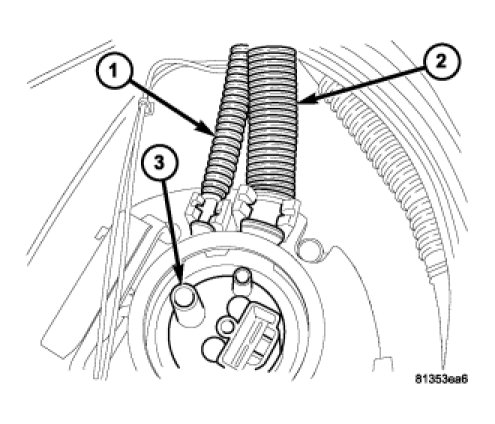 13. The module fuel level sending card (1). The fuel return lines (2). The fuel supply line (3).