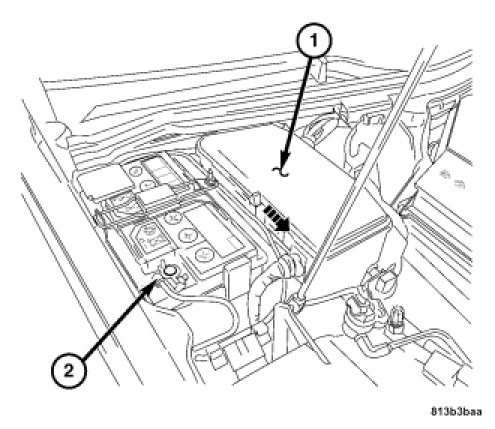 2. Slide the clips forward to remove the plastic control module box cover (1).