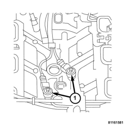 1. Position the knock sensors (1) on the engine block.
