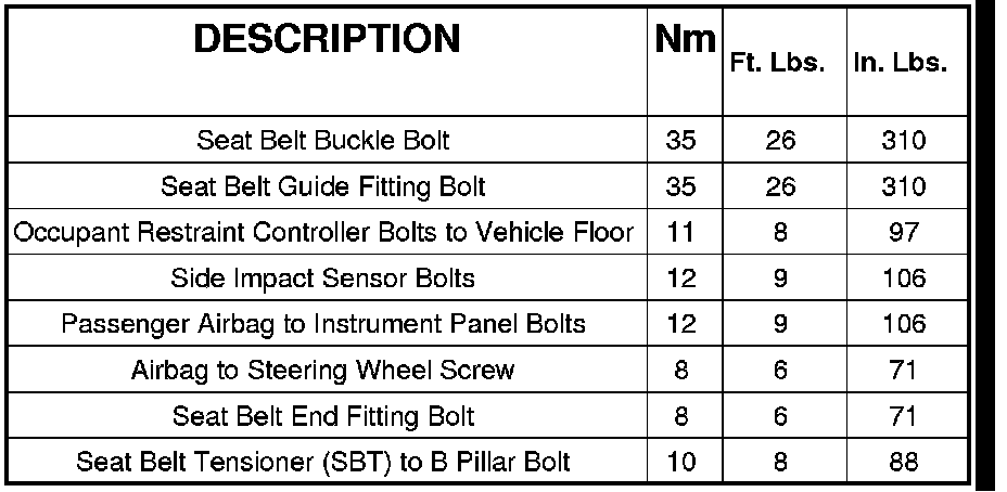 Restraints and Safety Systems: Specifications