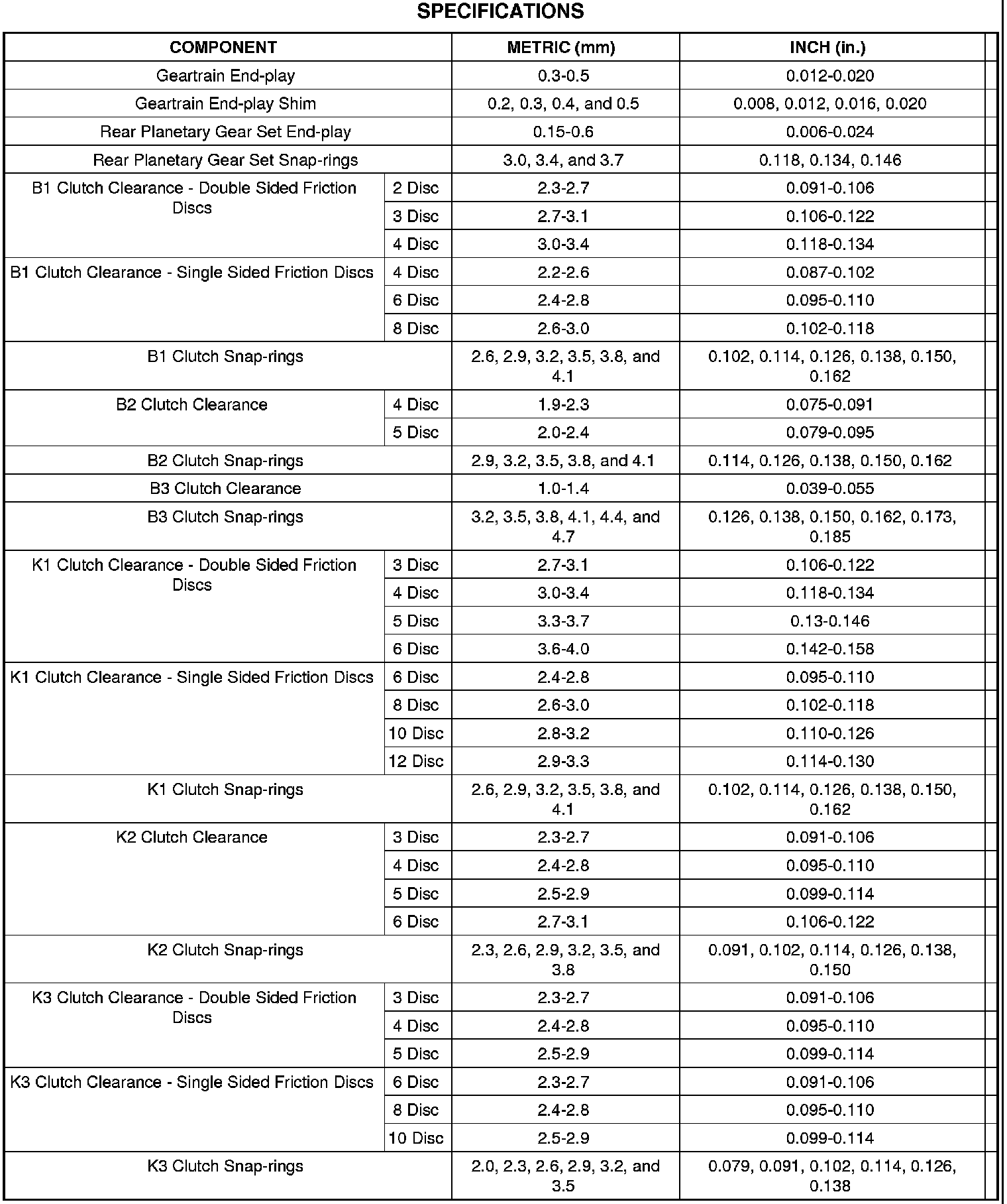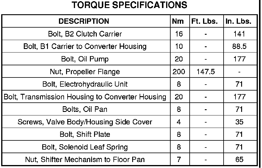 Home >> Chrysler >> 2008 >> Crossfire V6-3.2L >> Repair and Diagnosis >> Specifications >> Mechanical Specifications >> Automatic Transmission/Transaxle >> System Specifications