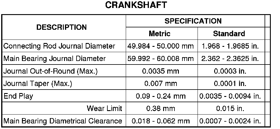 8. After the main bearing bed plate is installed, check the crankshaft turning torque. The turning torque should not exceed 5.6 Nm (50 in. lbs.).