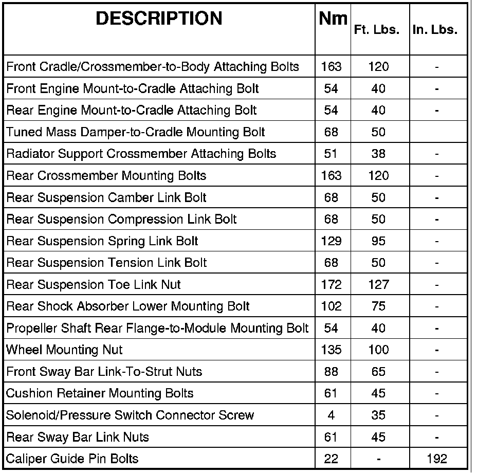 SPECIFICATIONS - TORQUE