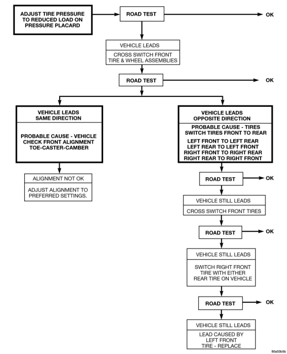 Use the following Vehicle Lead Diagnosis And Correction Chart to diagnose and correct a vehicle lead or drift problem.