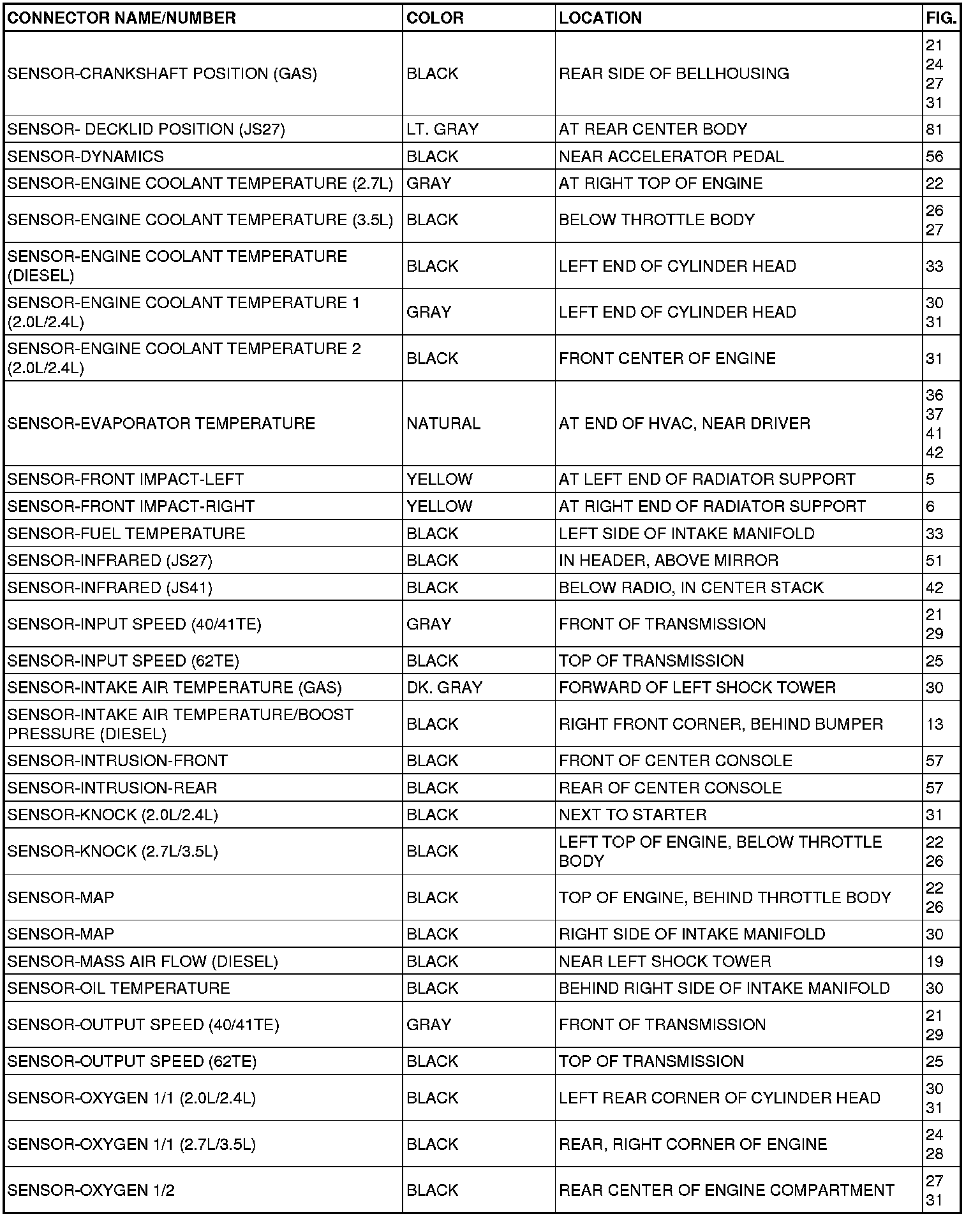 Home >> Chrysler >> 2008 >> Sebring Convertible L4-2.4L >> Repair and Diagnosis >> Locations >> Connector Locations >> Connector Location Index