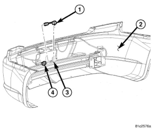 1. Position the power folding top chime (1) onto the rear bumper reinforcement.
